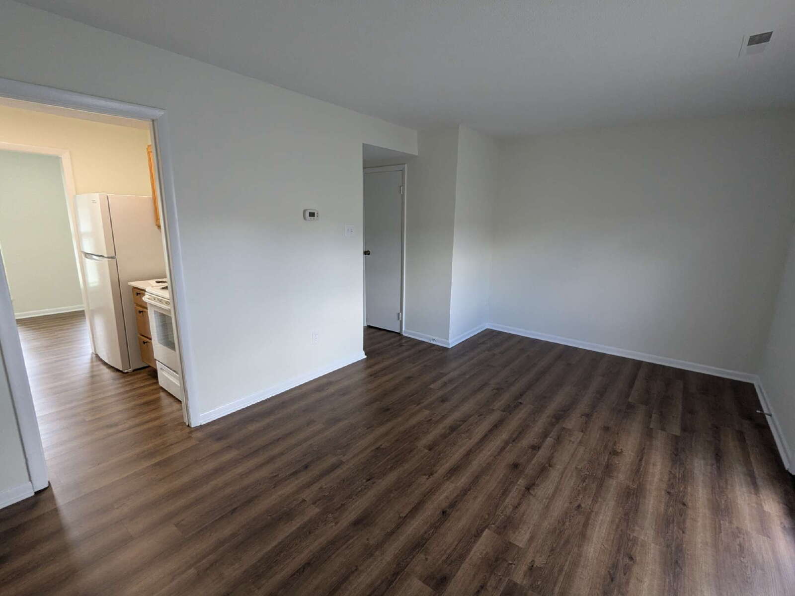 This recently upgraded 2-bedroom, 1.5-bath townhome at 1B Holly Court features modern upgrades including new LVP flooring, LED lighting, fresh paint, and a kitchen with quartz countertops. The unit includes a private storage shed, front porch, and off-street parking.